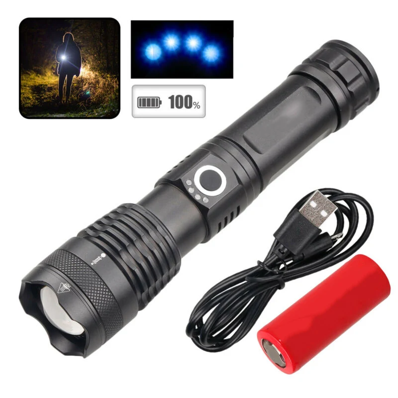 500000 Lumens XHP50 5 Mode LED USB Rechargeable 18650 Flashlight Torch Long Distance Light Beam To 500M