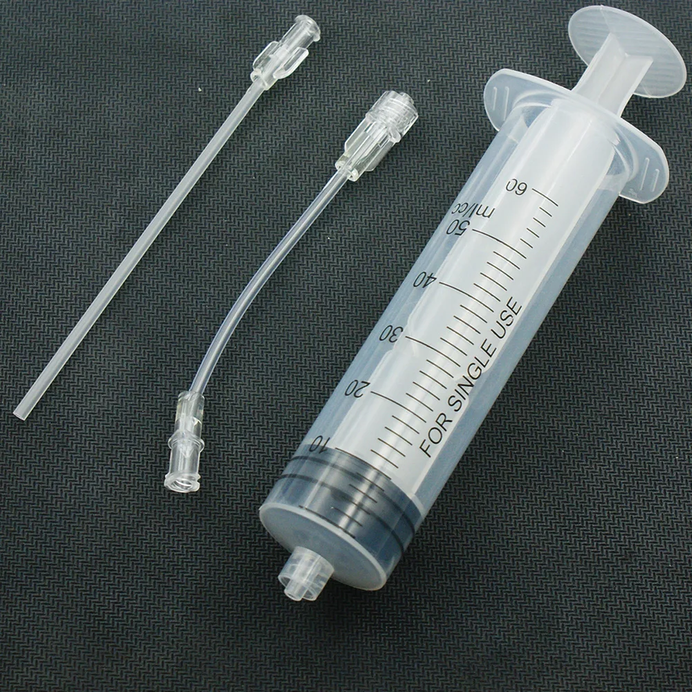 Bicycle Tubeless Tire Liquid Injection Tool Bike Tire Tubeless Sealant Injector 60ml Syringe Rubber Hose Kit For MTB Bicycle